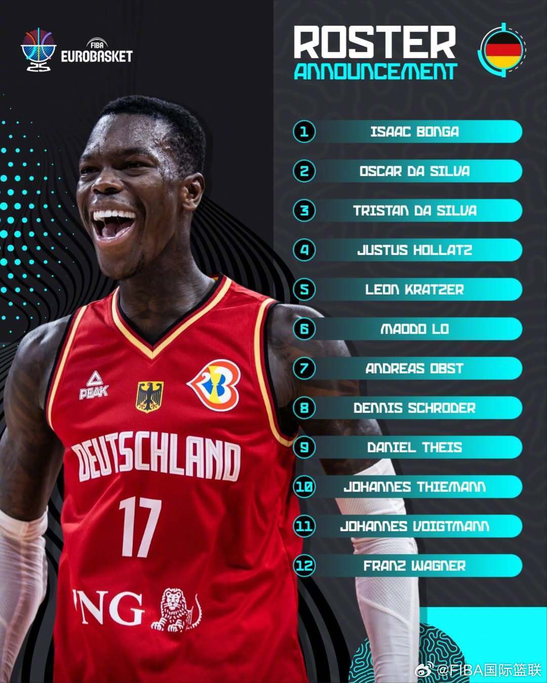 德国公布欧锦赛12人大名单:施罗德小瓦格纳领衔